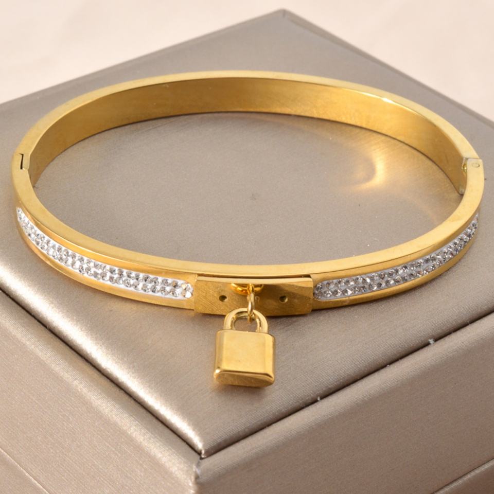 เครื่องประดับแฟชั่นกันน้ำ เครื่องประดับแฟชั่นสั่งทำ สร้อยข้อมือสแตนเลสชุบทอง 18K แบบล็อค