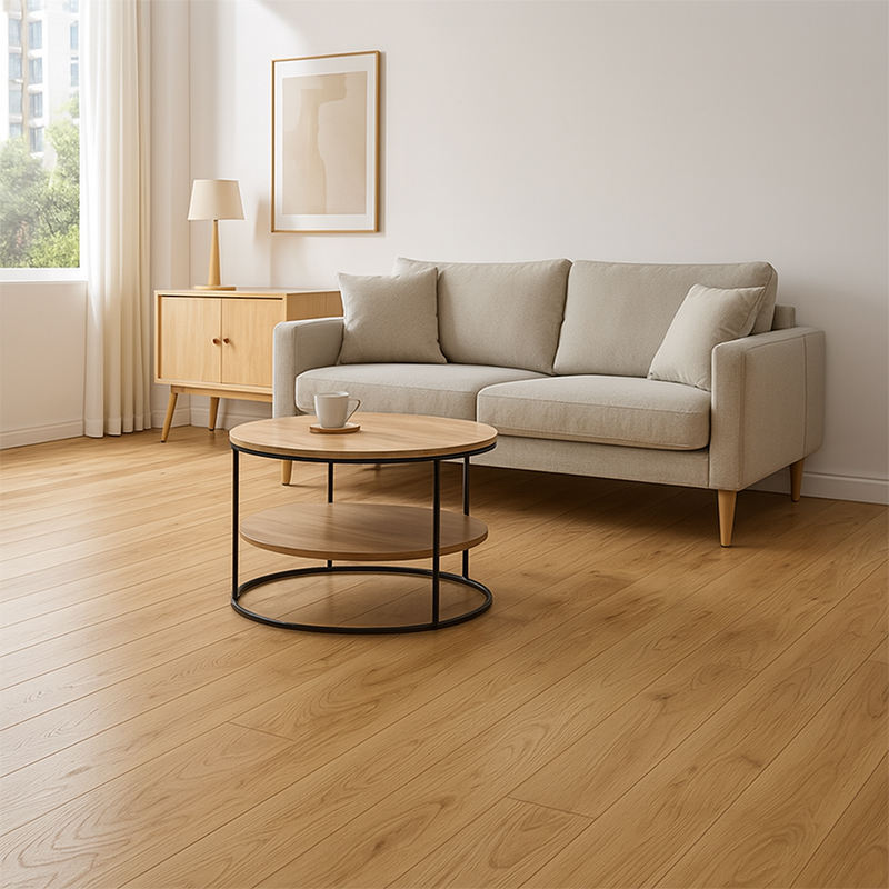 พื้นไม้กันน้ำ ติดตั้งง่าย รับประกันหนึ่งปี เป็นมิตรกับสิ่งแวดล้อม พื้นไม้โอ๊คขาวสำหรับห้องนั่งเล่น