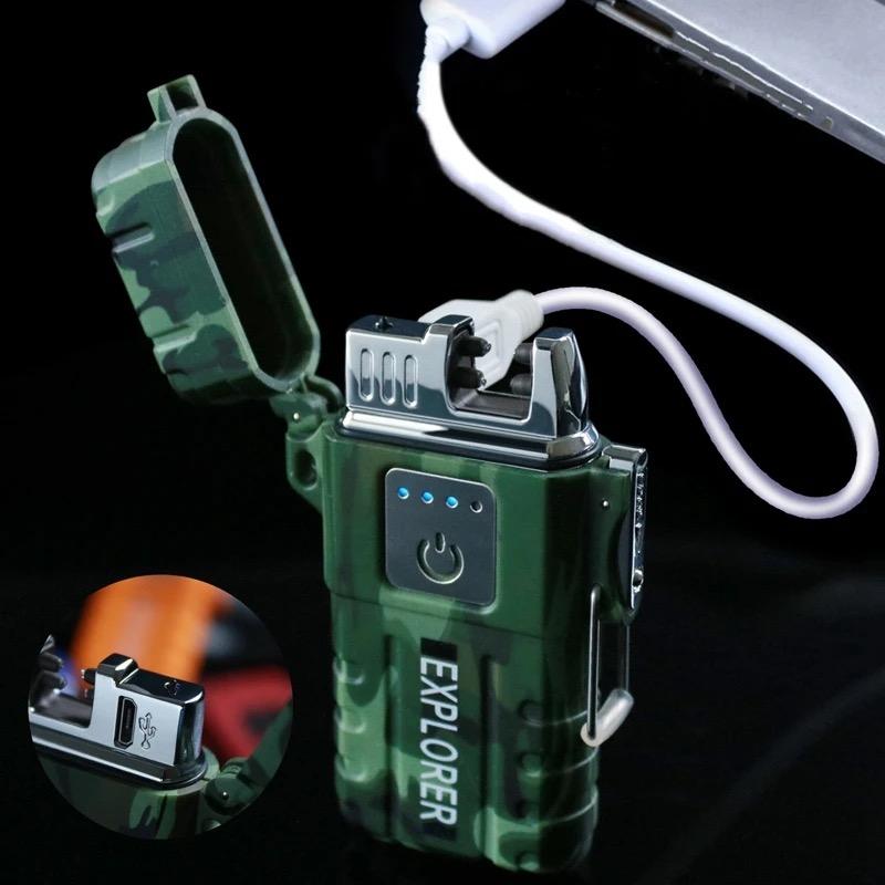 ที่จุดบุหรี่ไฟฟ้าแบบไร้เปลวไฟกันน้ำที่จุดบุหรี่อาร์คพลาสม่าแบบคู่สามารถชาร์จไฟได้ USB กันลมไม่มีบิวเทน