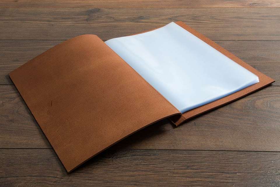 ฝาครอบเมนูหนังแท้กันน้ำวัสดุ PU มีลวดลายถักเสร็จด้านหลังผลิตภัณฑ์หนังสังเคราะห์