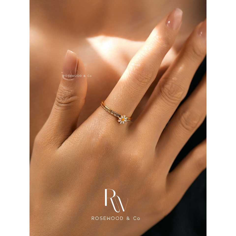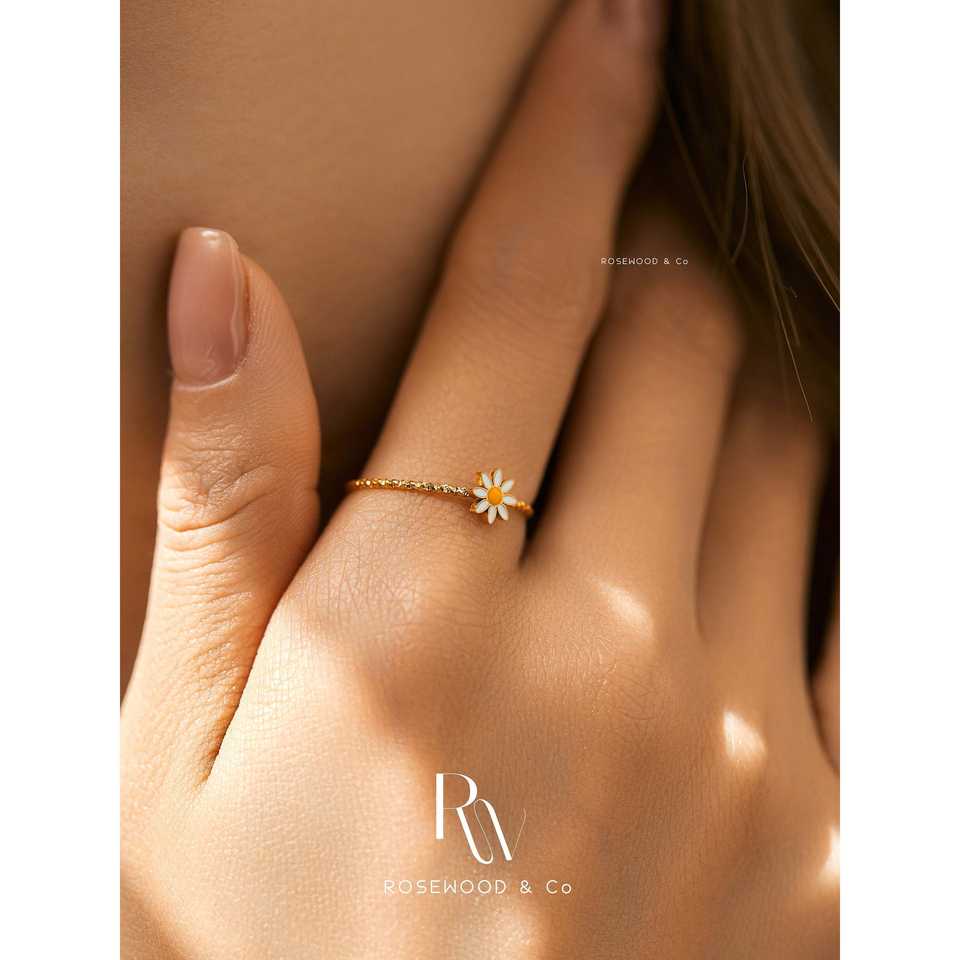 แหวนลายดอกเดซี่บางเฉียบ ชุบทอง 18K สแตนเลสกันน้ำ ไม่หมอง ดีไซน์มินิมอล ซ้อนกันได้ เหมาะสำหรับทุกเพศ สวมใส่สบายๆ
