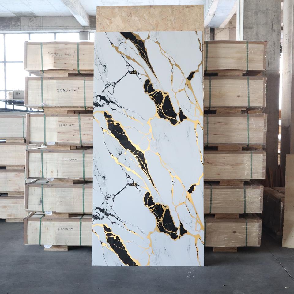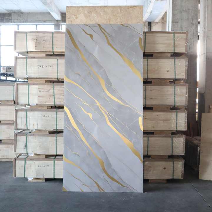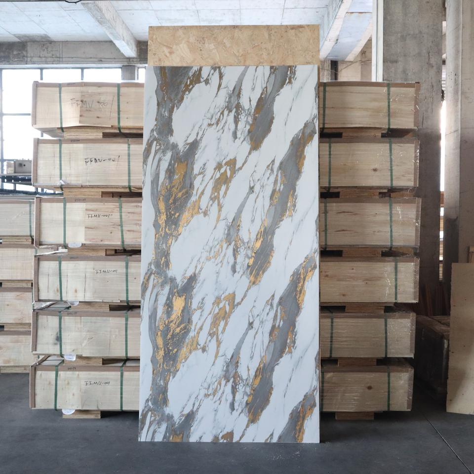 แผ่นพีวีซีลายหินอ่อนสีทองคุณภาพสูง กันน้ำ แผ่นพีวีซี SPC ขนาดใหญ่สำหรับตกแต่งบ้าน โรงแรม และพื้นที่เชิงพาณิชย์