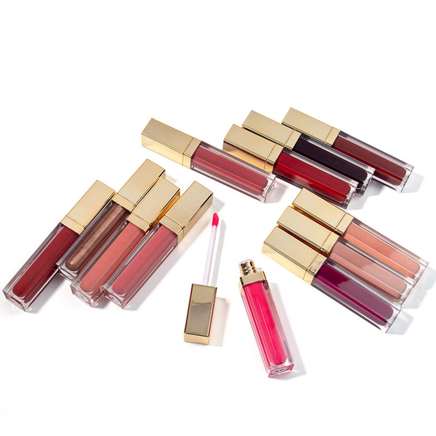 ลิปกลอสกันน้ำสีชัด 12 เฉดสี หลอดทรงเหลี่ยมสีทอง ติดทนนาน ลิปสติกเนื้อลิควิดปรับแต่งได้