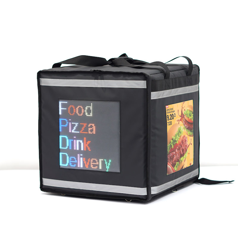 กระเป๋าเก็บความร้อนแบบกันน้ำคุณภาพสูง พิมพ์โลโก้ฟรี กระเป๋าส่งอาหารแบบหลายช่องพร้อมไฟ LED กระเป๋าเป้สะพายหลังพร้อมหน้าจอ LED
