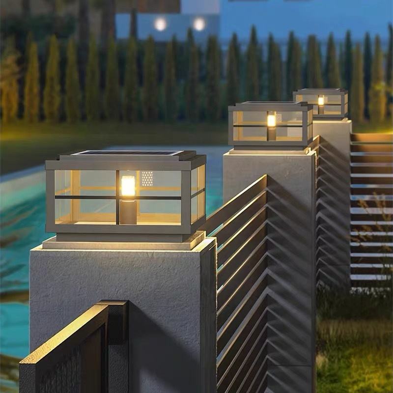 ไฟเสาโลหะกันน้ำระดับ IP65 สำหรับวิลล่าและสวน ขนาด 25/30/40/50 ซม. ไฟ LED พลังงานแสงอาทิตย์สำหรับภายนอกอาคาร พร้อมเซ็นเซอร์ตรวจจับแสง
