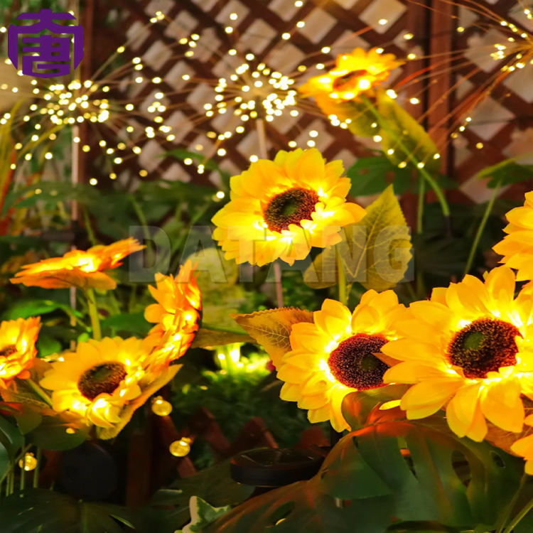 ไฟโซลาร์กันน้ำ IP65 รูปทรงดอกทานตะวัน สีสันปรับแต่งได้ สำหรับเทศกาล วันหยุด สวนในบ้าน ตกแต่งสวนหลังบ้าน