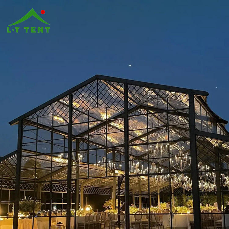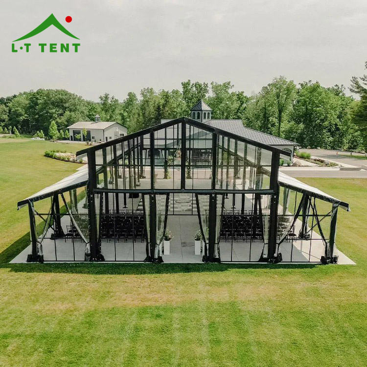 เต็นท์เอเทรียมทรงสูงกรอบสีดำกันน้ำสำหรับงานแต่งงานกระโจม1000ที่นั่งกลางแจ้งหรูหรา