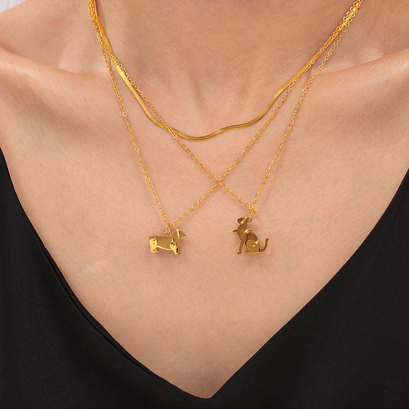 สร้อย316L รูปสุนัขประดับอัญมณีไม่เสื่อมเสียแบบกันน้ำที่ฐานสแตนเลส14K 18K PVD ชุบทอง