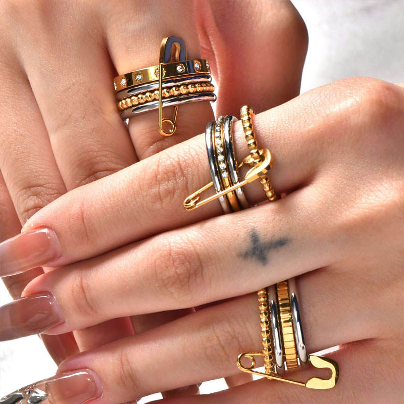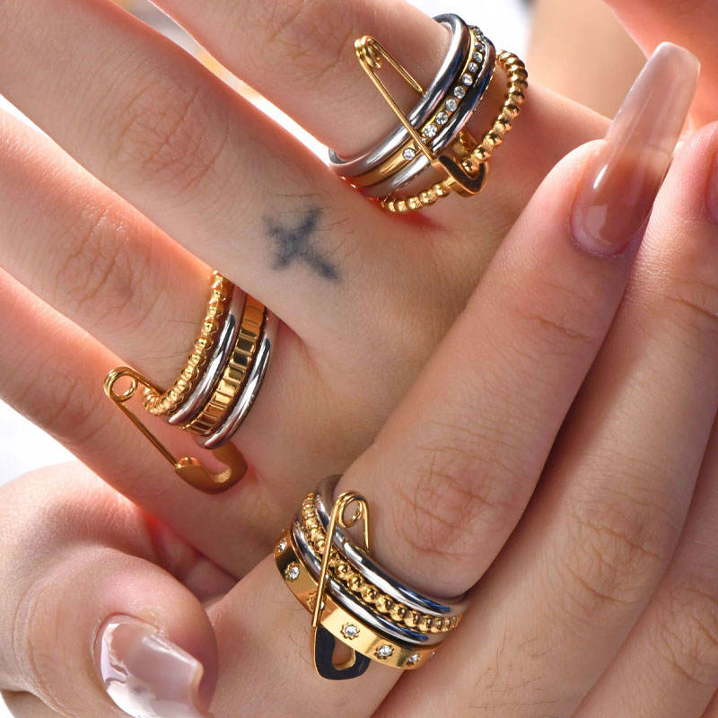 แหวนกันน้ำไม่หมอง 14k 18k ชุบทอง PVD แฟชั่น แหวนสแตนเลส 316L ประดับเพชรซิคอนสำหรับผู้หญิง