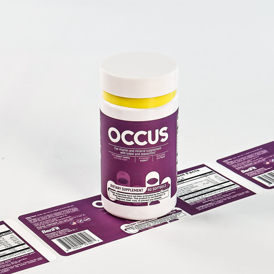 ฉลากขวดไวนิลกันน้ำกันน้ำมันสำหรับผลิตภัณฑ์เสริมอาหาร | โรงงานผลิตตามสั่งที่ได้รับการรับรองมาตรฐาน ISO 9001 ในมณฑลกวางตุ้ง