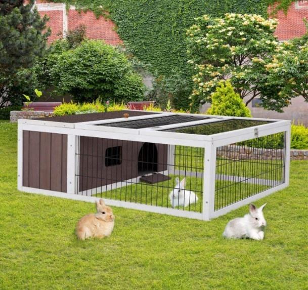 กรงกระต่ายกลางแจ้งกันน้ำขนาดใหญ่ บ้านกระต่าย รั้วสำหรับสัตว์เลี้ยงกระต่าย บ้านกระต่าย