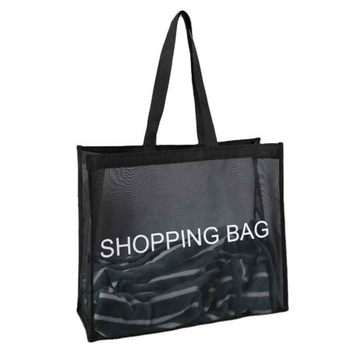กระเป๋าหิ้วชายหาดผ้าโพลีเอสเตอร์และไนลอนกันน้ำแบบตาข่ายโปร่งใส มีซิปปิด สีพื้น สำหรับใส่ของช้อปปิ้ง