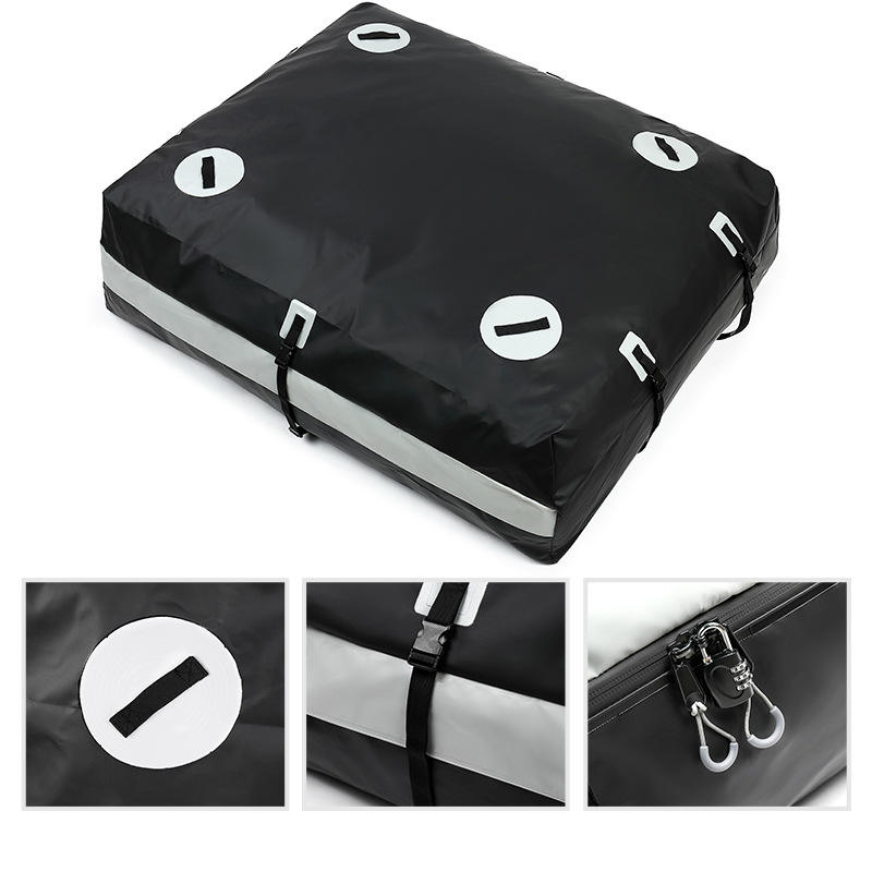 กระเป๋าใส่สัมภาระบนหลังคารถยนต์แบบพกพา ผ้าอ็อกซ์ฟอร์ดกันน้ำเคลือบ PVC ขนาดใหญ่ ความจุเยอะ สำหรับใช้งานกลางแจ้ง
