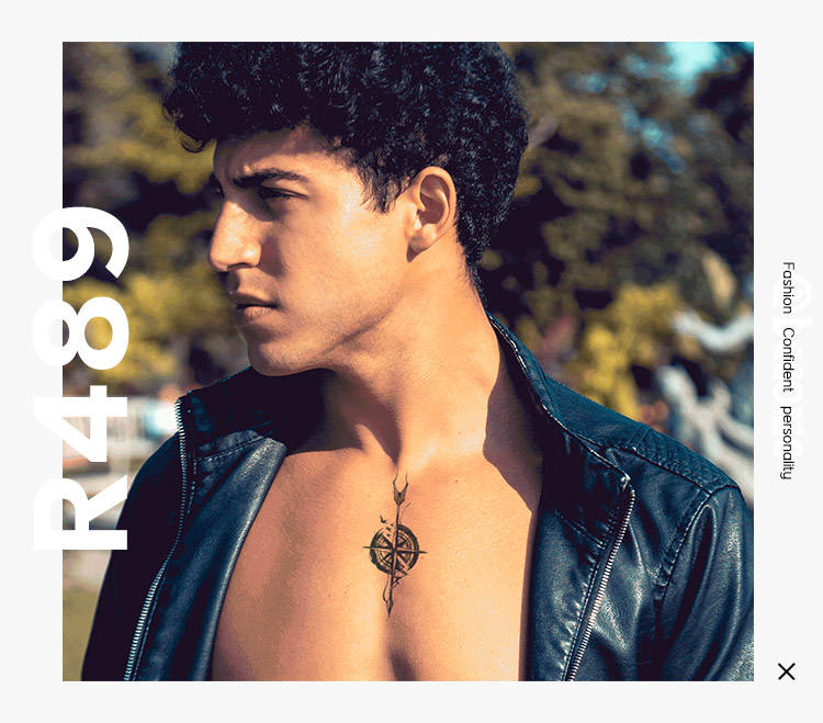 สติกเกอร์สักลายชั่วคราวลายเข็มทิศกันน้ำจากพืชสำหรับผู้ชาย ดีไซน์สมุนไพรทันสมัยโดย Tatu