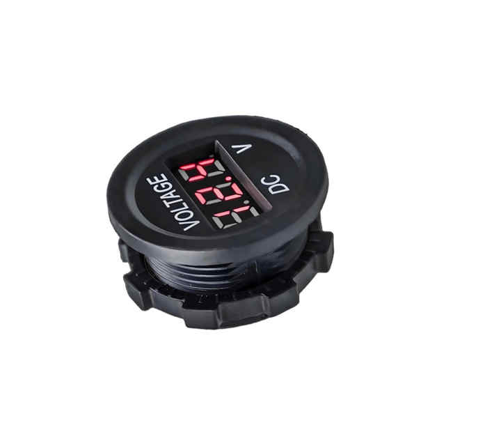 มิเตอร์วัดแรงดันไฟฟ้ากระแสตรงแบบวงกลมกันน้ำ 12-24V รุ่นมินิ OLED พร้อมไฟ LED ทดสอบแรงดันแบตเตอรี่รถยนต์ วัสดุ PC ทนไฟ ช่องเสียบแบบ Pin