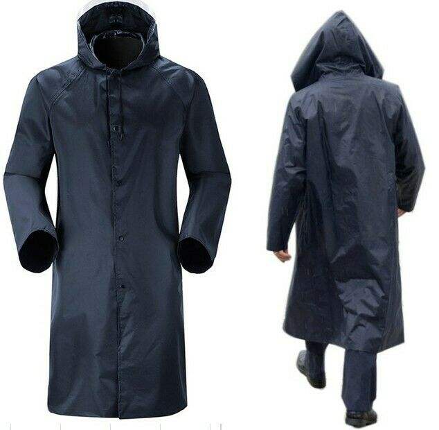 กันน้ำเสื้อกันฝน Rain เสื้อแจ็คเก็ตและเสื้อกันฝนไนลอนยาวแจ็คเก็ตสีดำผู้ใหญ่กันน้ำยาว