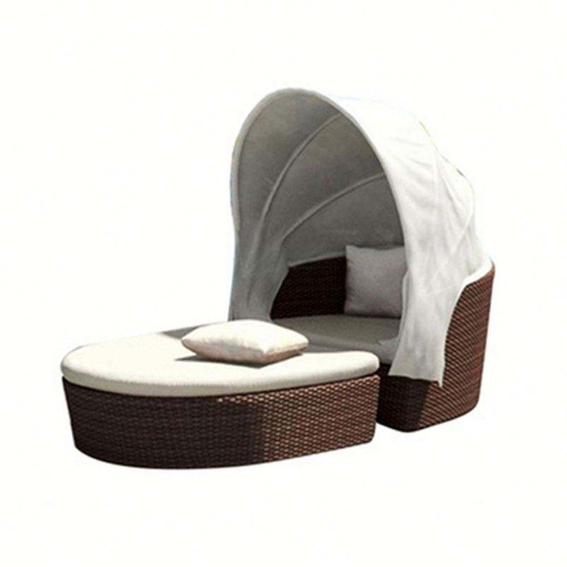 โซฟาหวายกันน้ำทรงกลมเตียงอาบแดดเฟอร์นิเจอร์กลางแจ้งกันสาดกันน้ำได้เก้าอี้หวายเดย์เบดสำหรับสวนรับประทานอาหาร