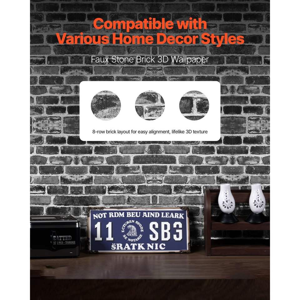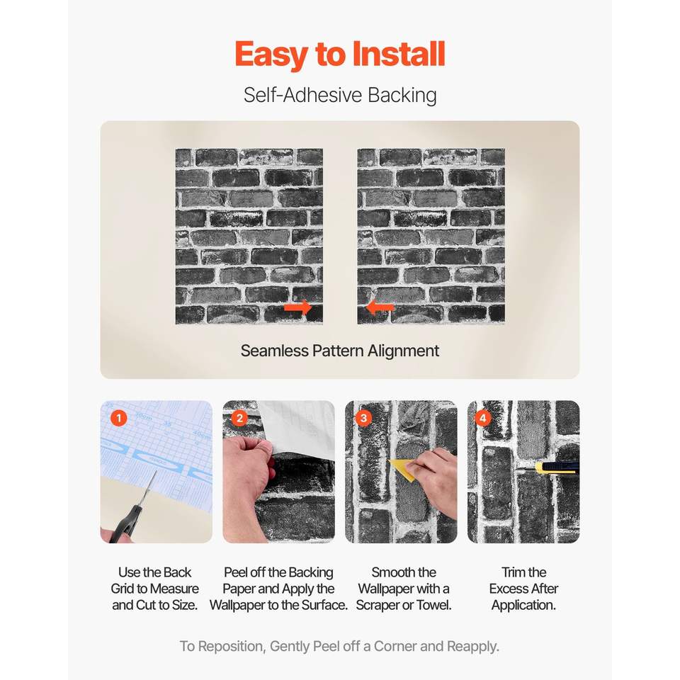 Waterproof Self-Adhesive Gray Brick Wallpaper 17.7 X 393.7 Inch Peel Stick Contact Paper for Bedroom Office Desk Decor Easy