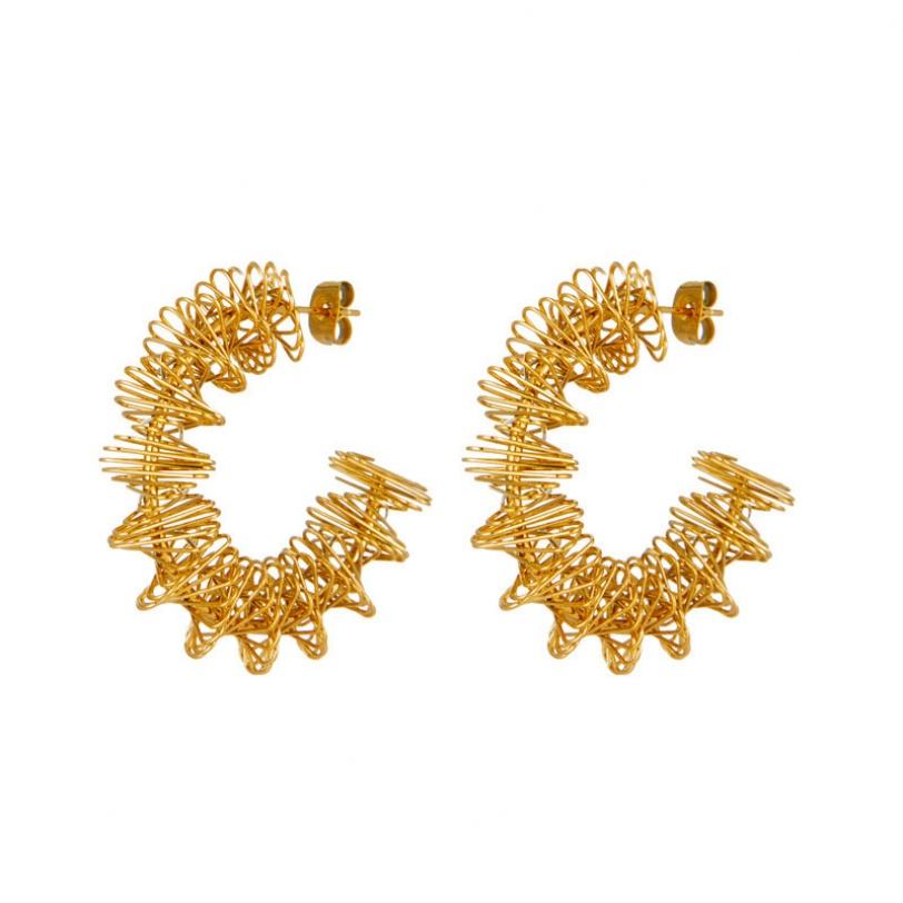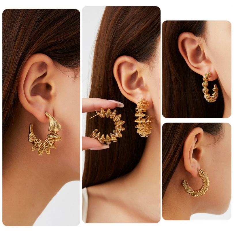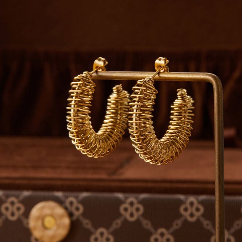 ต่างหูสแตนเลสสตีลกันน้ำ ชุบทอง 14k 18k PVD เครื่องประดับแฟชั่นสำหรับผู้หญิง ต่างหูแบบพันลวดสำหรับฤดูใบไม้ผลิ