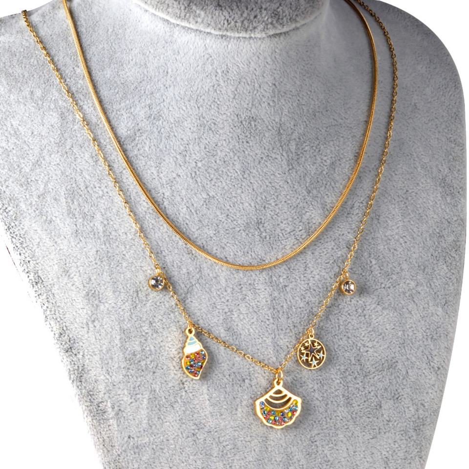 สร้อยคอโชคเกอร์หนาแบบกันน้ำ สแตนเลสสตีลชุบทอง 18K ลายปลาดาว ซีรีส์มหาสมุทร ประดับมุกและจี้เปลือกหอย สำหรับผู้หญิงและเด็กผู้หญิง