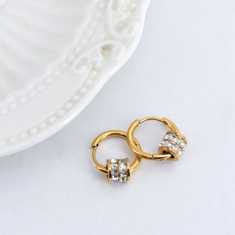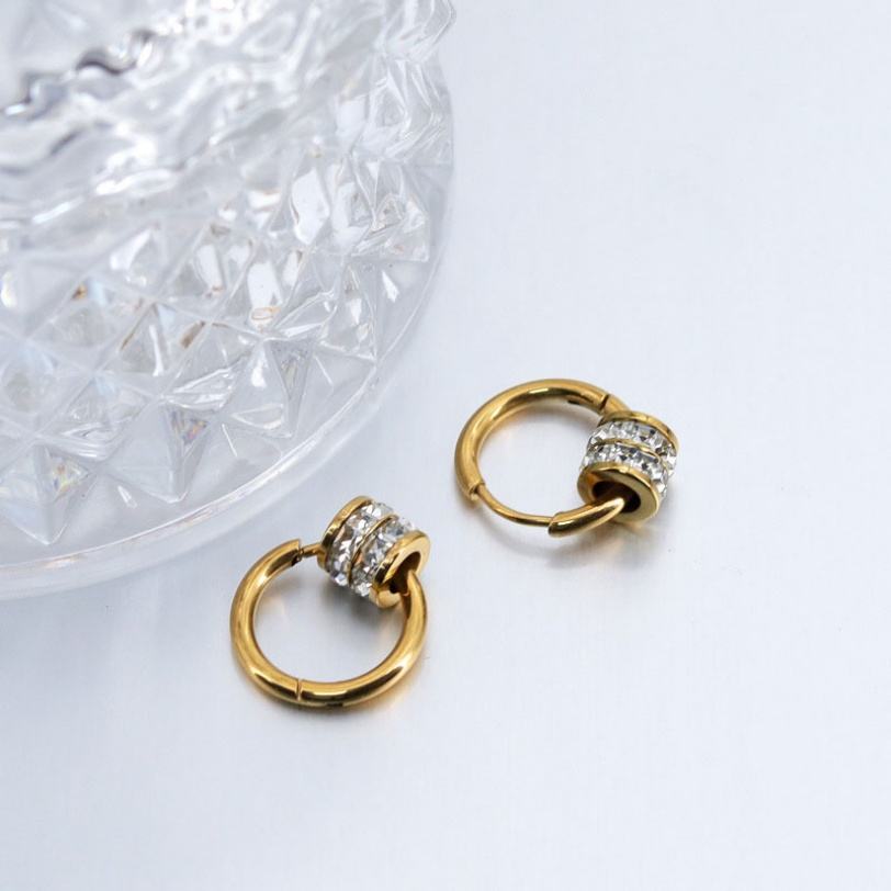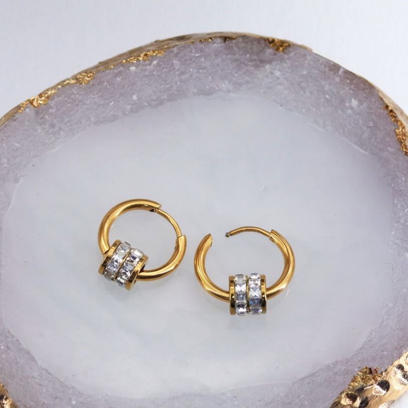 ต่างหูสแตนเลสสตีลกันน้ำ ชุบทอง 14k 18k PVD แบบคลาสสิก ประดับเพชรซิร์คอน แฟชั่นสำหรับผู้หญิง