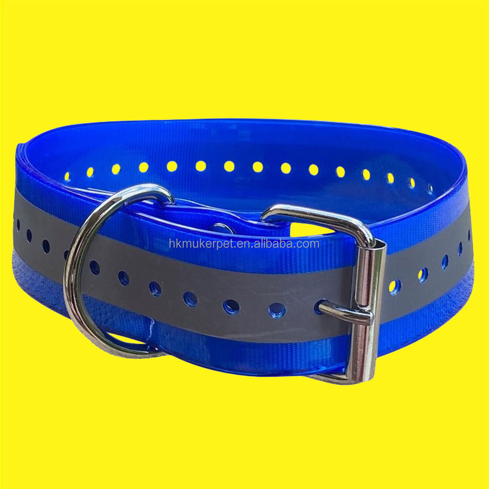 วัสดุ:สายรัดเคลือบ TPU มันวาวพร้อมแถบสะท้อนแสง + หัวเข็มขัดลูกกลิ้งโลหะ