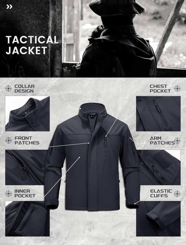 เสื้อแจ็คเก็ตกันน้ำแบบยุทธวิธีสำหรับผู้ชาย เสื้อแจ็คเก็ตกันลมแบบมีฮู้ดลายพราง เสื้อแจ็คเก็ตแบบนุ่มสไตล์อเมริกัน