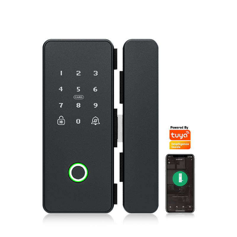 กันน้ำทูย่าสมาร์ทล็อคประตูกระจกไร้กุญแจรหัสผ่านลายนิ้วมือการ์ดกุญแจกลไก 5in-1 สมาร์ทล็อคสำหรับประตูกระจกไร้กรอบ