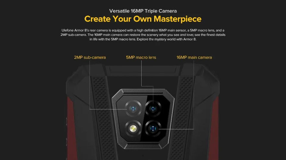 กล้อง:16MP(F/2.2)+ 5MP(F/2.4)+ กล้องหลัง2MP tripe + กล้องหน้า8MP