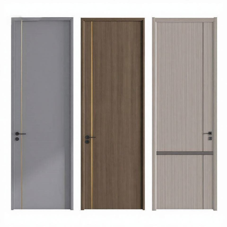 ประตูดีไซน์ทันสมัย แกนกลางวัสดุไม้เนื้อแข็งหรือไม้อัดเอ็มดีเอฟหนา 40 มม. ผิวเคลือบกันน้ำ กันปลวก ทนทาน