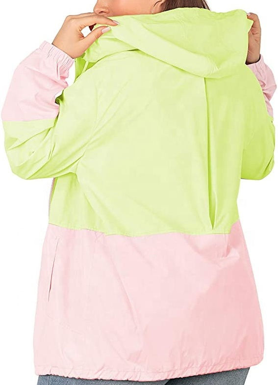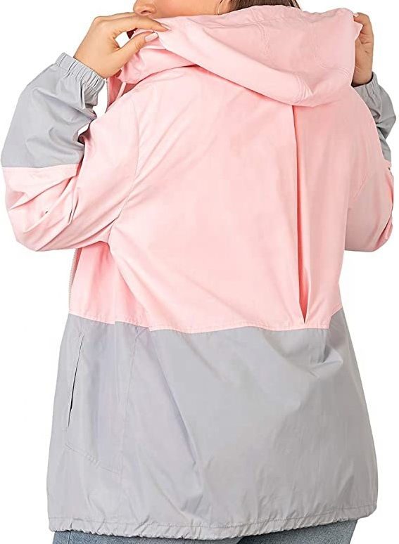 เสื้อแจ็คเก็ตกันน้ำกันลมไซส์ใหญ่สำหรับผู้หญิง พร้อมฮู้ด ดีไซน์โลโก้ตามสั่ง หลากหลายสี