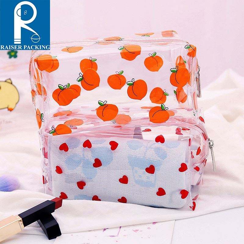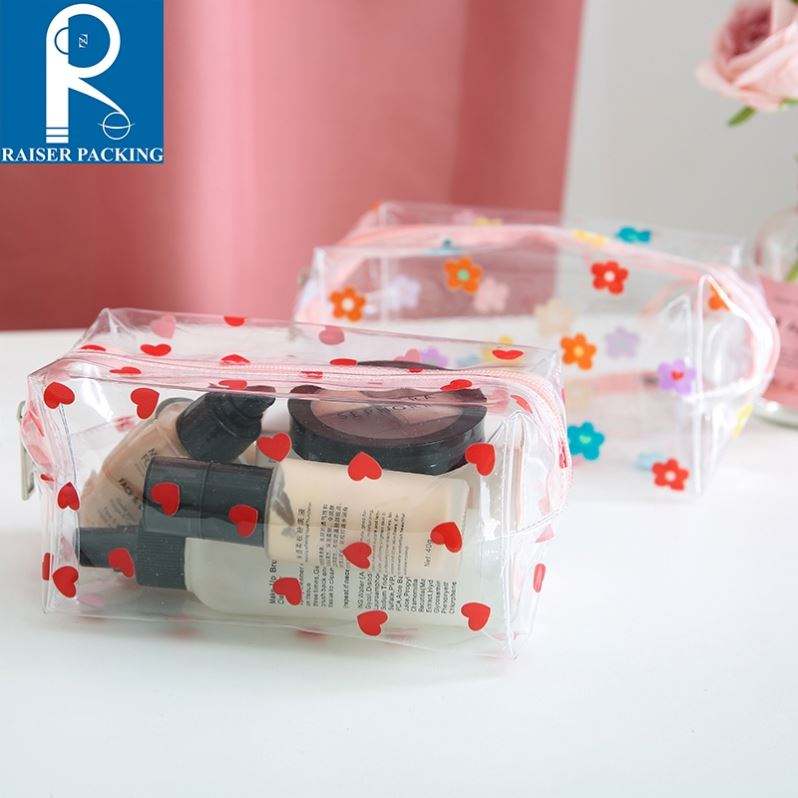 กระเป๋าเครื่องสำอางพีวีซีใสสำหรับผู้หญิงกระเป๋าใส่เครื่องสำอางมีซิปกันน้ำ
