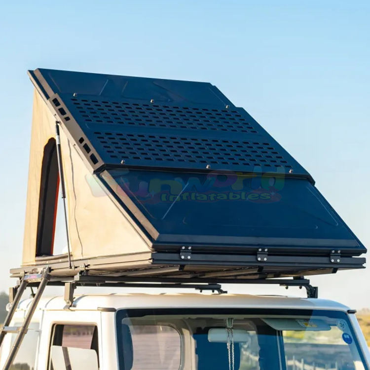 เต็นท์ผ้าใบกันน้ำทรงสามเหลี่ยมสำหรับ4คนเต็นท์บนหลังคารถสีดำ4x4 RTT หลังคาเต็นท์ด้านบนพร้อมกันสาด
