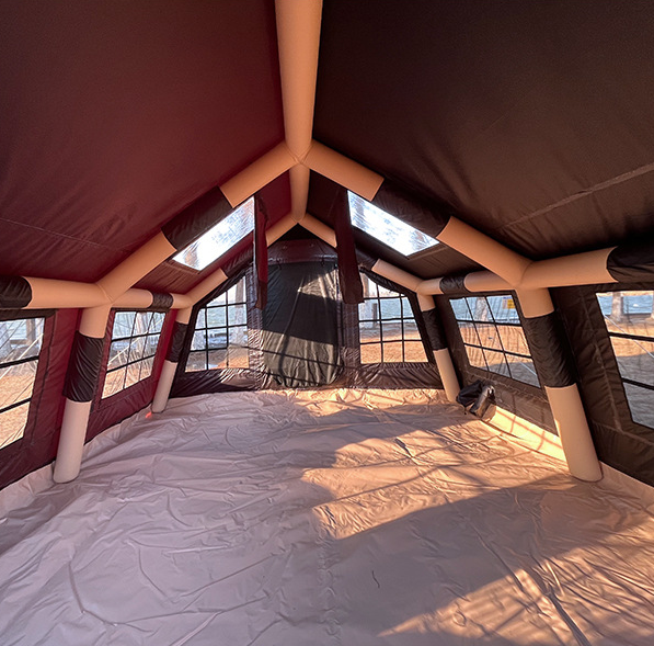 เต็นท์ผ้าใบแคนวาสกันน้ำแบบติดตั้งง่ายสำหรับตั้งแคมป์กลางแจ้ง ใช้ได้ทุกฤดู 1 ห้องนอน โครงสร้างแบบตรง พร้อมปั๊มลม