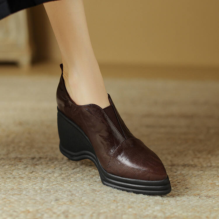 รองเท้าส้นสูงผู้หญิงหนังแท้สีดำ พื้นหนา กันน้ำ ผลิตจากหนังวัวคุณภาพสูง ใส่สบาย ไม่เมื่อย
