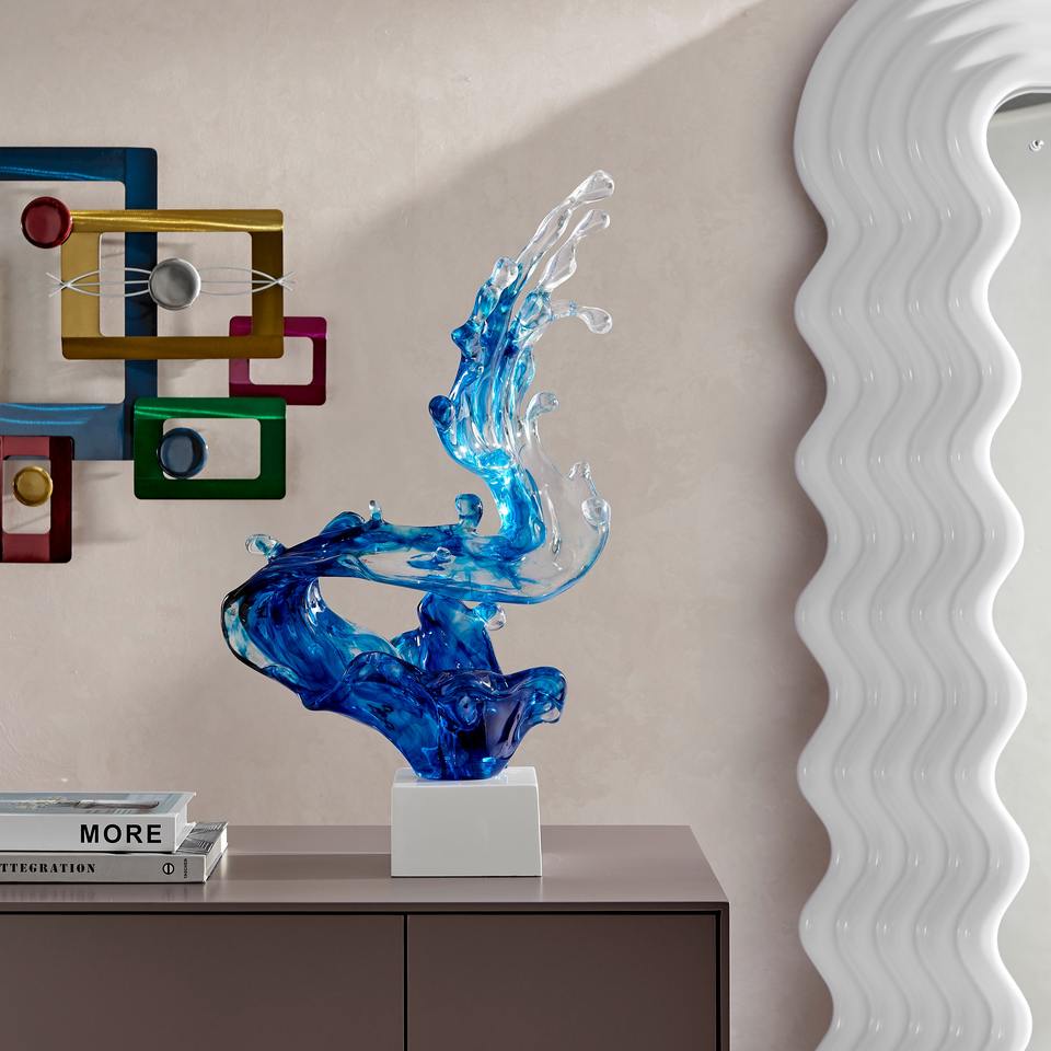รูปปั้นเรซินคลื่นสีฟ้าตกแต่งโต๊ะวัตถุหรูหราเหมาะสำหรับวางบนโต๊ะร่วมสมัยหรือที่บ้าน