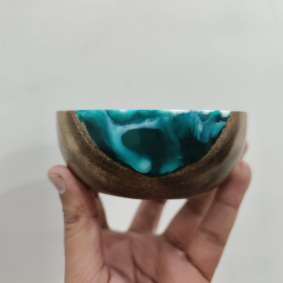 ชามลายคลื่น ชามไม้เรซิ่นทันสมัย ชามไม้สำหรับเสิร์ฟอาหาร ชามไม้ขัดเงา ชามไม้ทำมือสำหรับรับประทานอาหาร