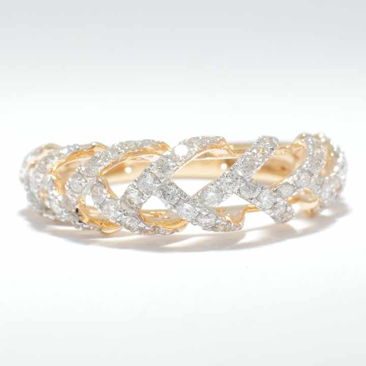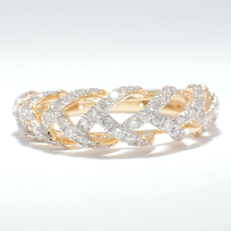 แหวนหมั้นเพชรเม็ดกลม14K ดีไซน์คลื่นสำหรับผู้ใหญ่ดีไซน์แบบเม็ดกลมสีเหลืองทองของขวัญสำหรับปาร์ตี้งานหมั้นสำหรับหุ้นส่วนชีวิต