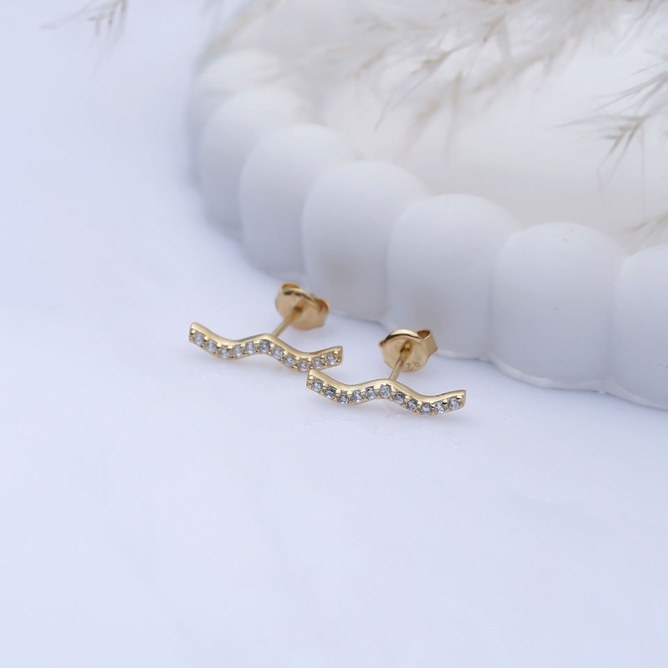 ต่างหูเม็ดเดี่ยวเพทายออกแบบเป็นคลื่น925เครื่องประดับตุรกีเงินสเตอร์ลิง