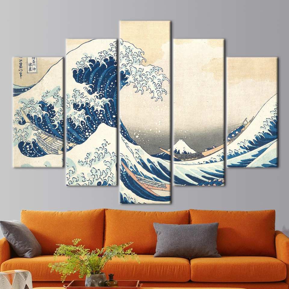 ผ้าใบพิมพ์ลายวิวทะเล: ศิลปะนามธรรมทะเล ศิลปะติดผนังรูปทะเล ชุด 5 ชิ้น: ภาพพิมพ์แบบห่อขอบ