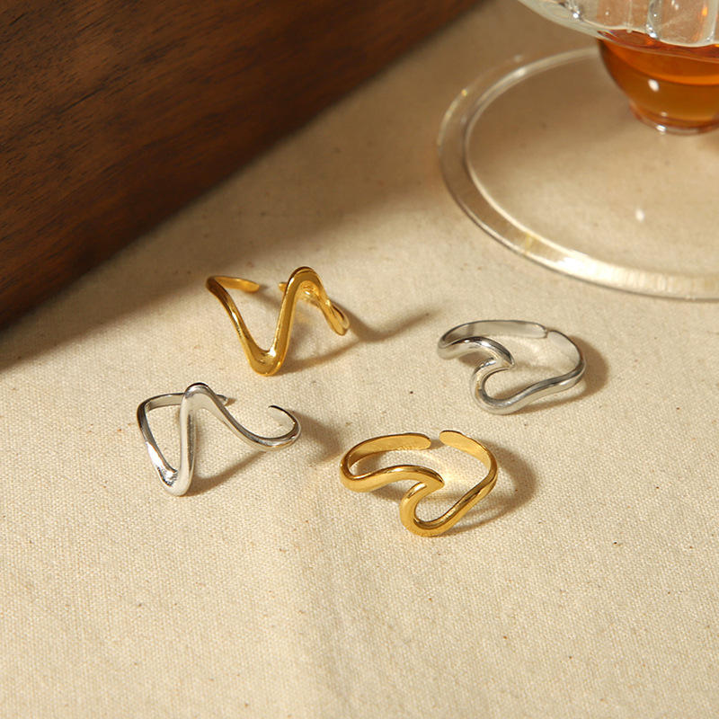 แหวนเหล็กไทเทเนียมรูปคลื่นสำหรับผู้หญิง ดีไซน์ไม่สม่ำเสมอ ปรับขนาดได้ ของขวัญเครื่องประดับ