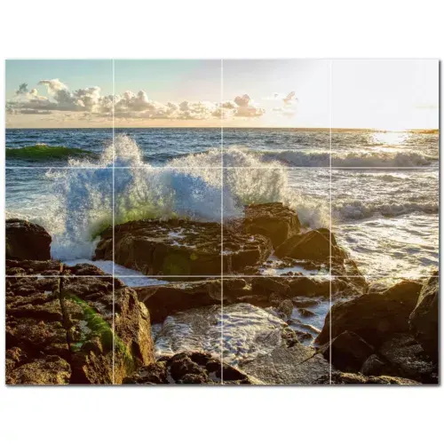 Waves Ceramic Tile Wall Mural PT501174 24"W X 18"H Set of 12 6x6 Tiles