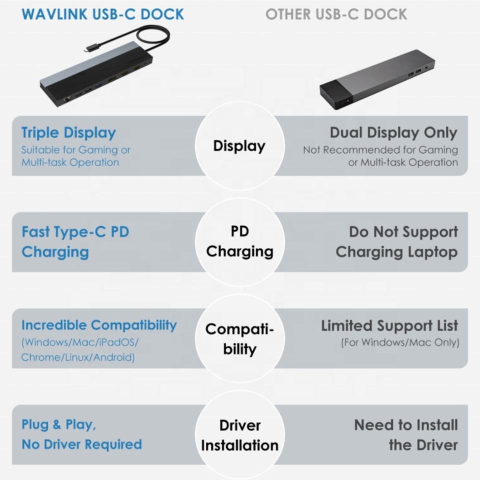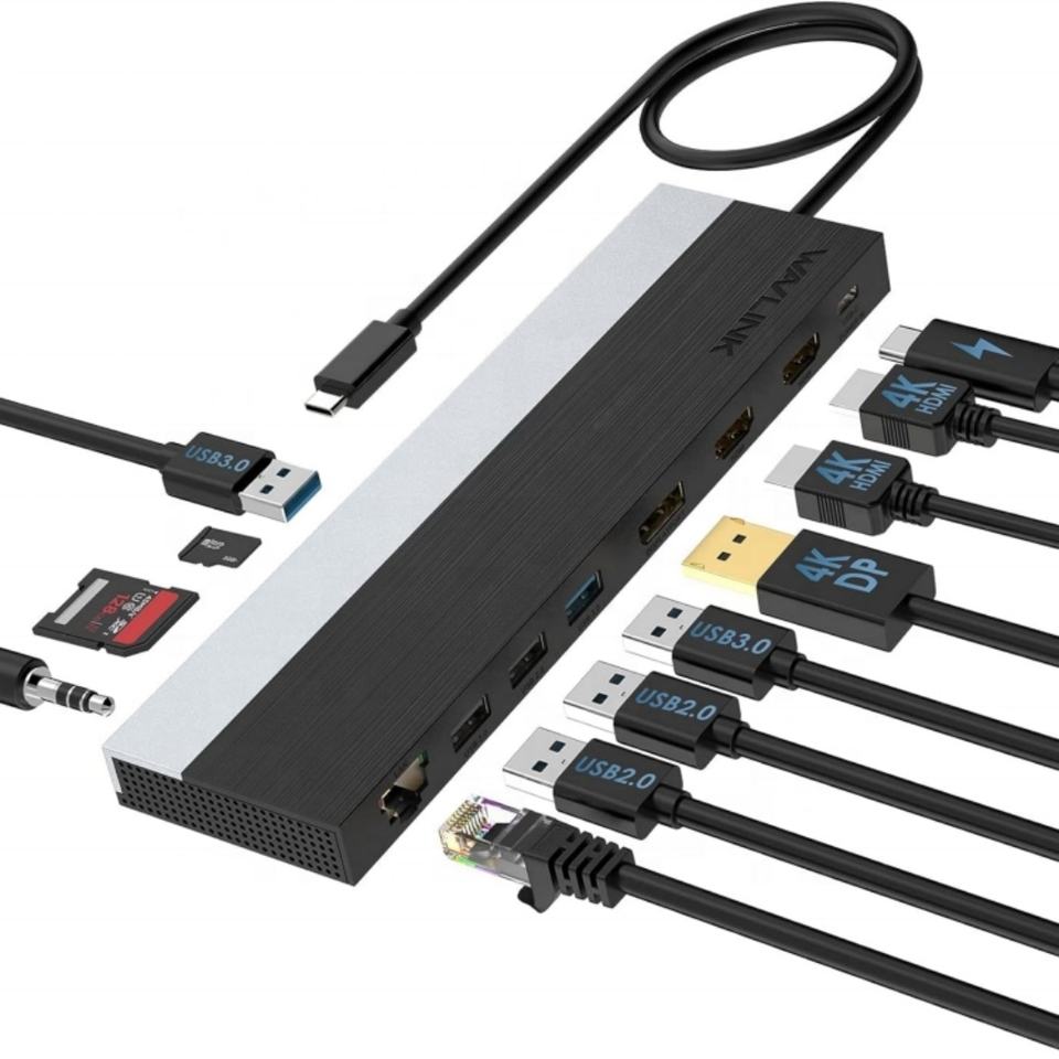 Wavlink UMD08 11-in-1 USB-C แท่นชาร์จ MST แบบสามจอพร้อมระบบส่งกำลังไฟ85W
