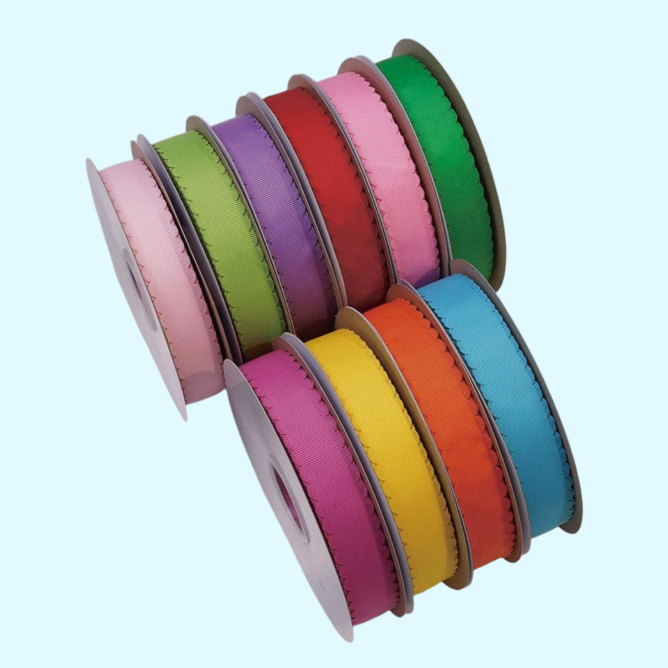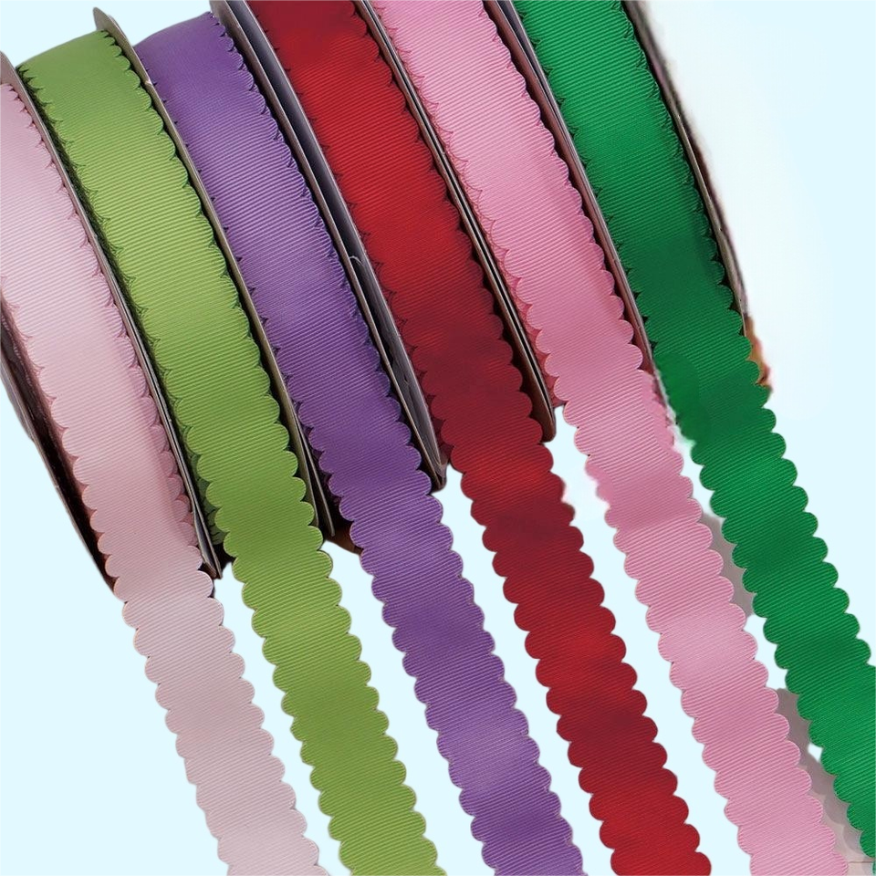 ริบบิ้นโกรเกรนขอบหยัก ทนทาน เนื้อสัมผัสแบบริบบิ้น เหมาะสำหรับเครื่องประดับผม งานประดับตกแต่ง และของตกแต่งอื่นๆ