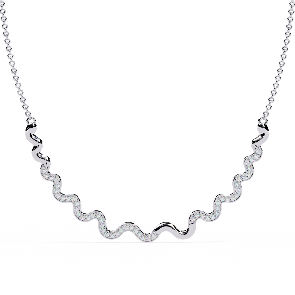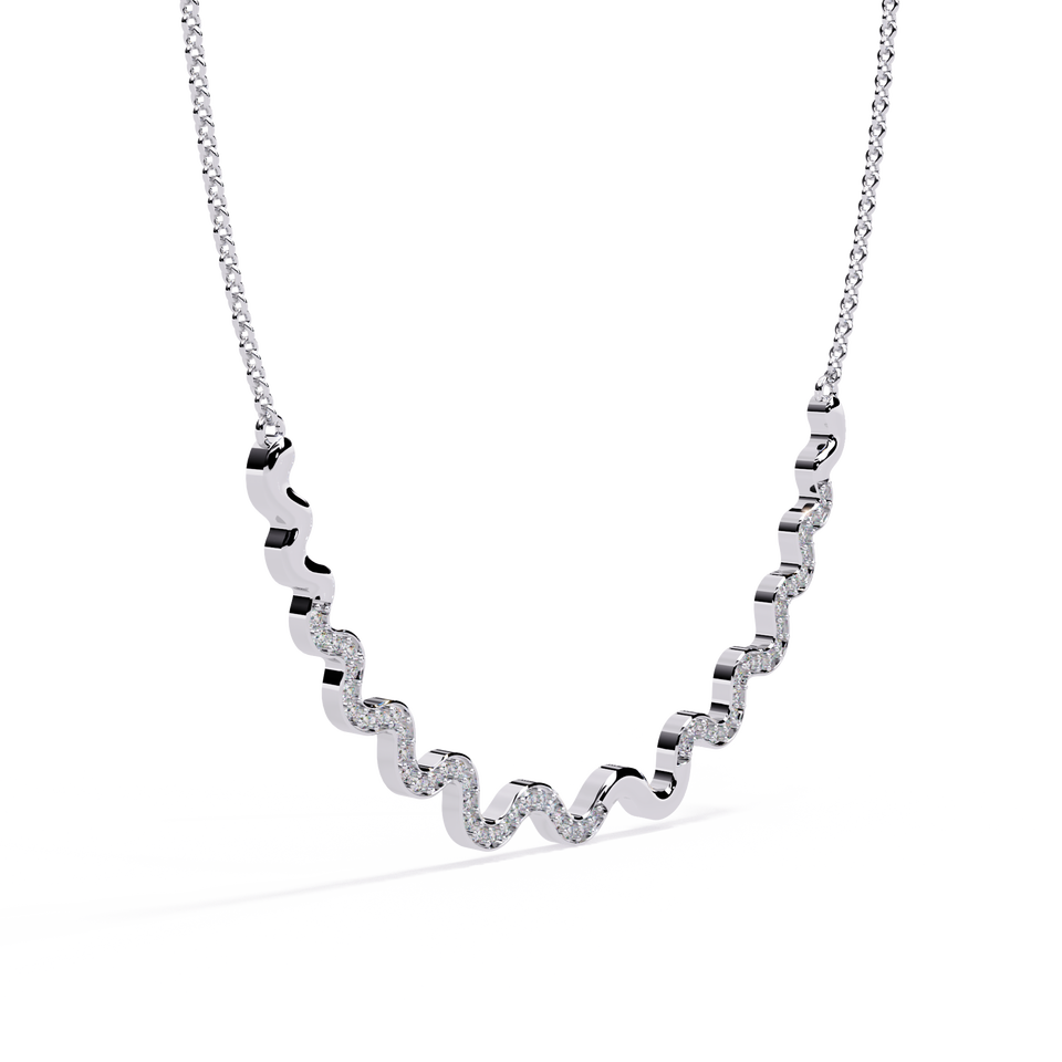 สร้อยคอทรงโค้งสีทองสีโรสโกลด์สีขาวประดับเพชรรูปตัวหยักดีไซน์หรูหรา