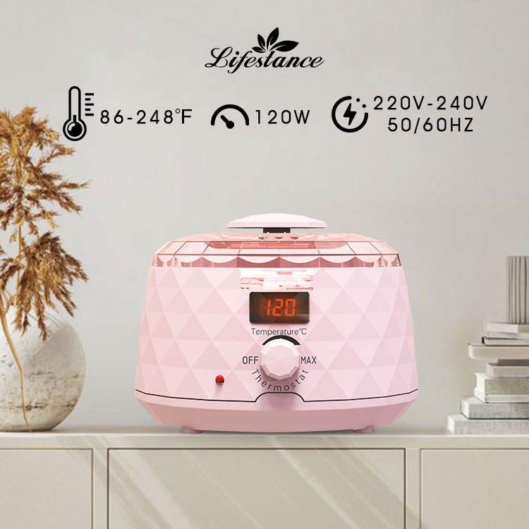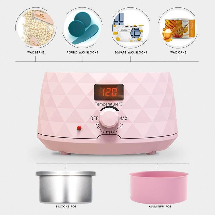 เครื่องทำแว็กซ์ดีไซน์เพชรที่อุ่นขี้ผึ้งละลายควบคุมอุณหภูมิได้อย่างแม่นยำสีชมพูสำหรับร้านเสริมสวย