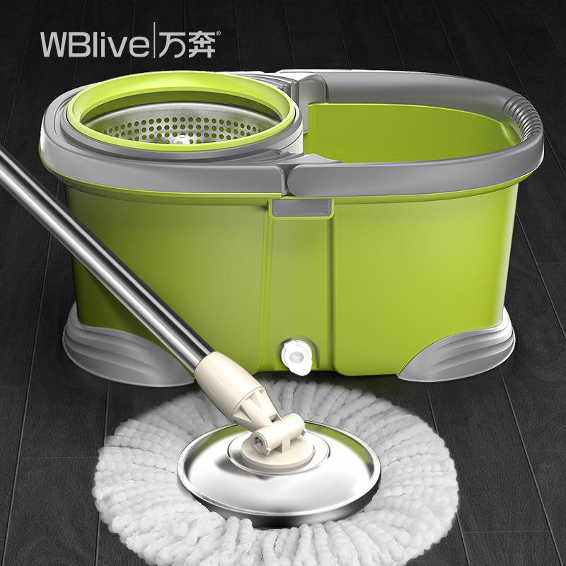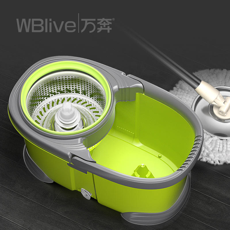 ไม้ถูพื้นแบบหมุน Wblive พร้อมตะกร้าพลาสติกสีเขียว ไมโครไฟเบอร์ ระบบขับเคลื่อนสองชั้น ใช้งานแบบไม่ต้องใช้มือ สำหรับทำความสะอาดพื้นไม้