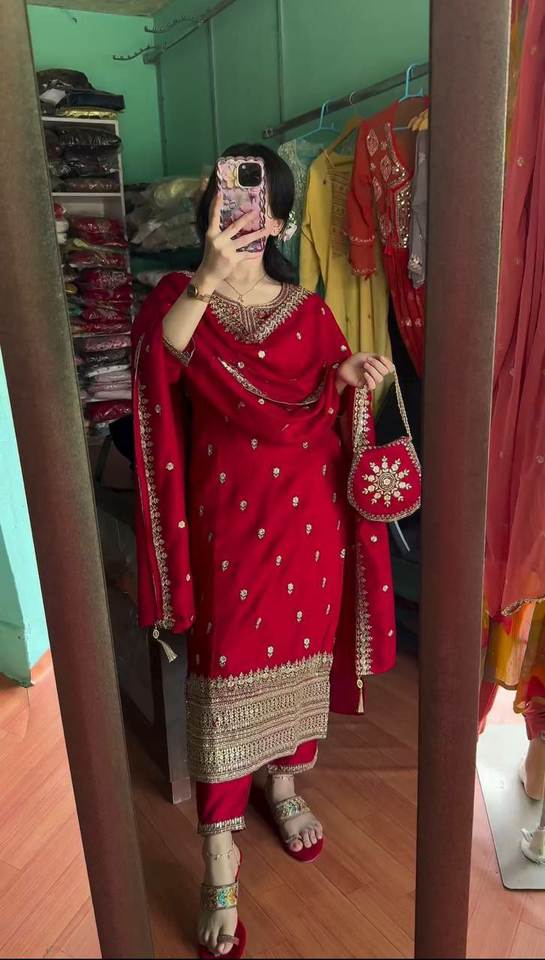 เรากำลังเปิดตัวงานเลี้ยงอาหารค่ำสีแดงที่ดูสง่างามที่สุดแต่ยังดูสวยและมีฟังก์ชั่นสวมชุดผ้าไหมโรมัน salwar kameez ด้วย dupatta