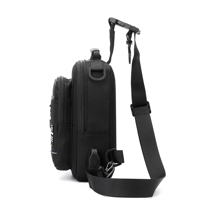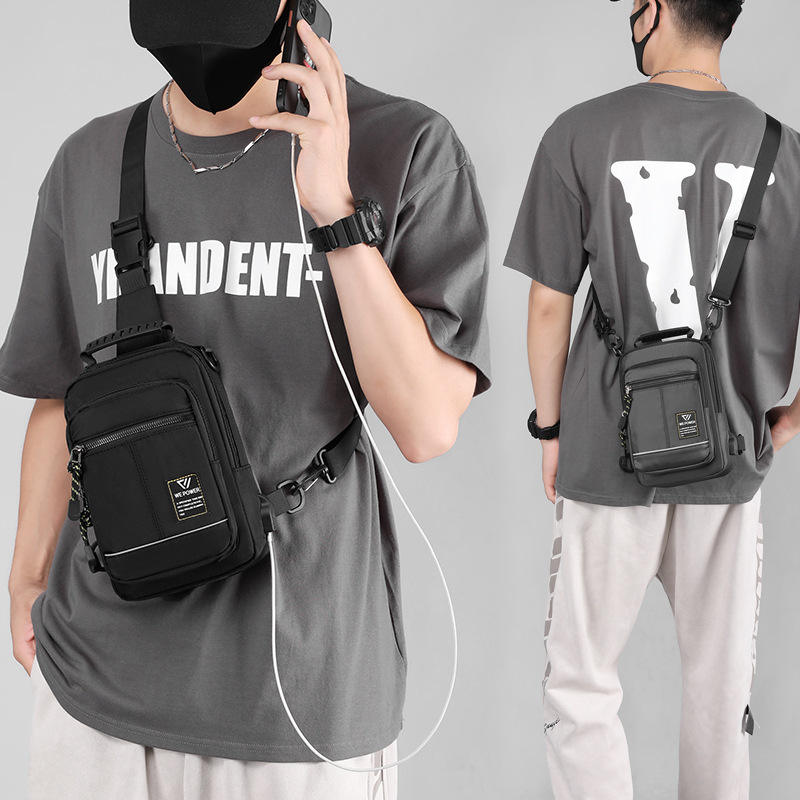 กระเป๋าคาดหน้าอกผู้ชายวีพาวเวอร์กระเป๋าสะพายข้างไนลอนสีทึบใช้ได้ทุกวันฤดูใบไม้ผลิ 2023