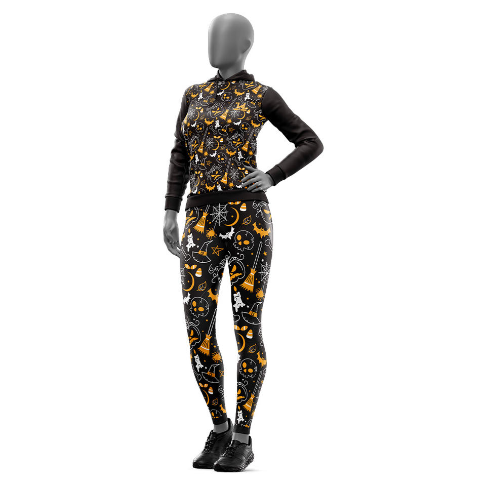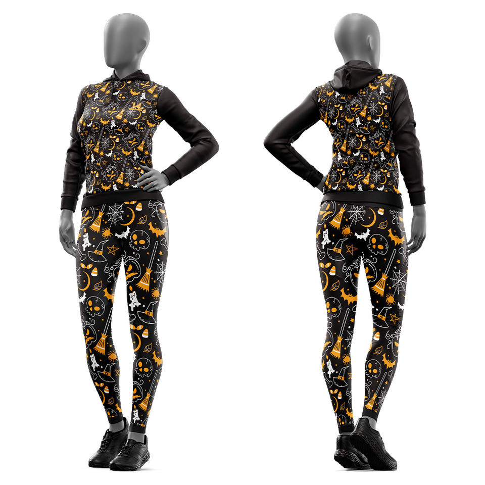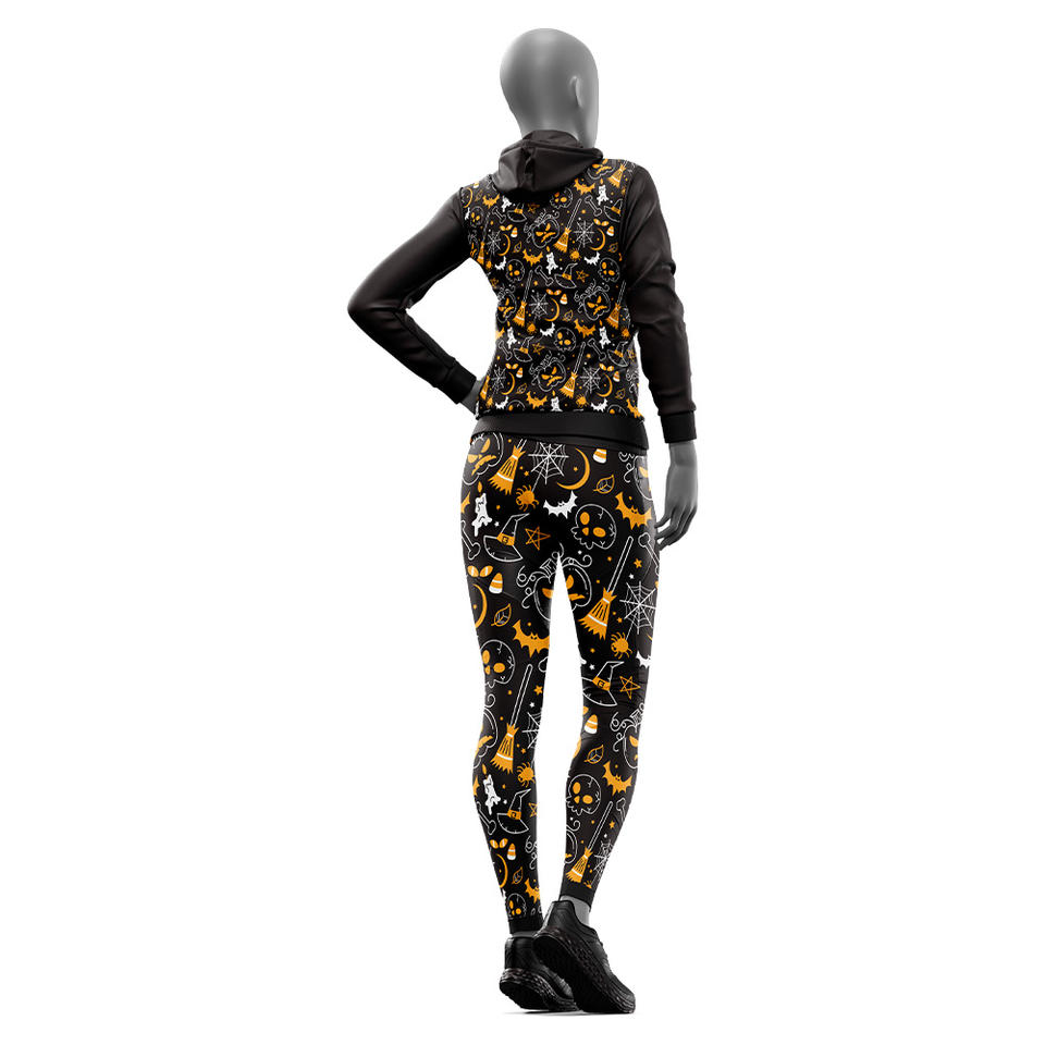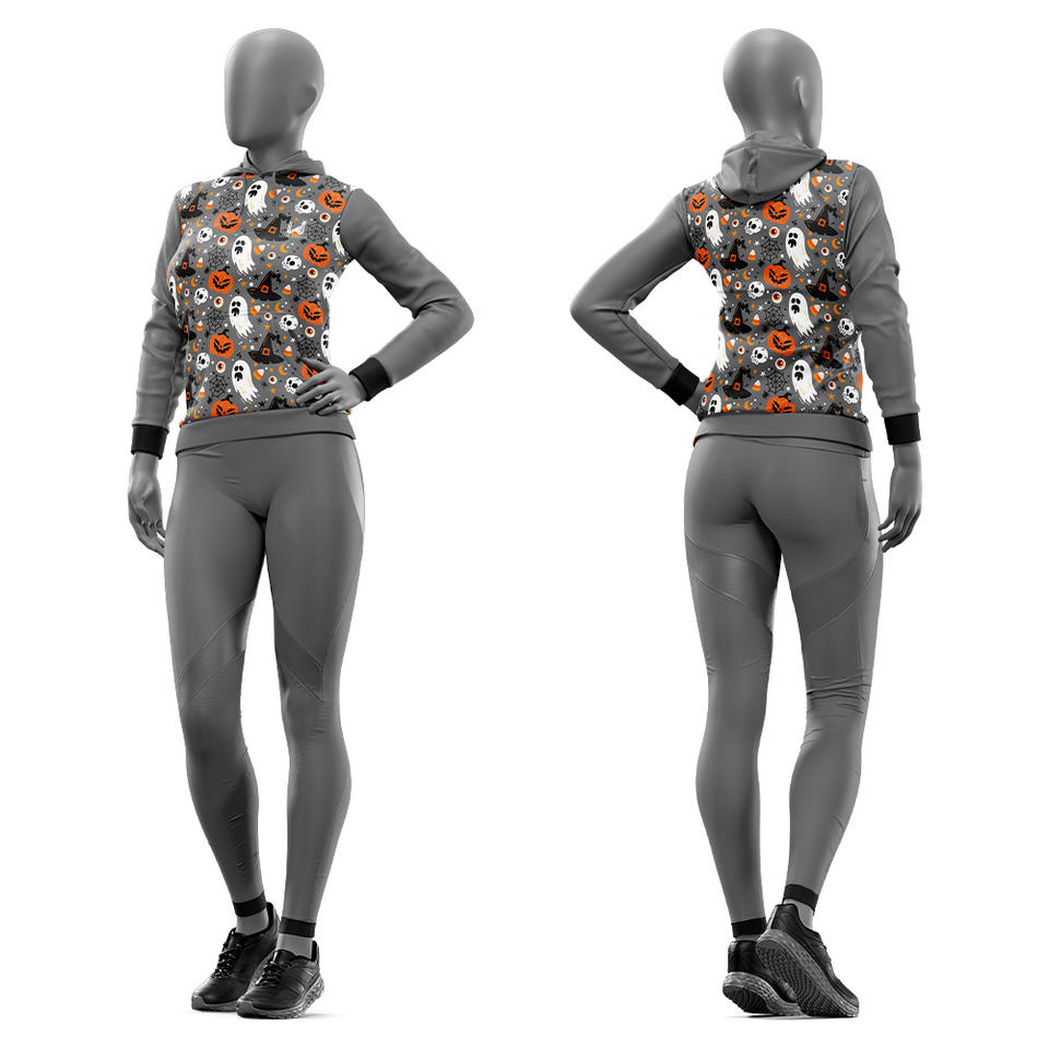 ชุดวอร์ม2-in-1ของผู้หญิง100% พิมพ์ลายฮาโลวีนผ้าโพลีเอสเตอร์กันลมระบายอากาศได้ดีชุดวอร์มออกกำลังกายแบบสวมหัวมีฮู้ด4เกมสำหรับฤดูหนาว